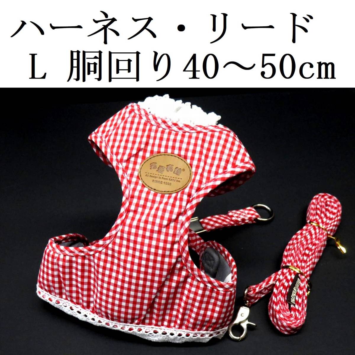 - ハーネス リードセット L 赤 胴輪 胴回り40~50cm リード 110cm 小型犬 レッド チェック柄 ギンガムチェック ペット メッシュ 犬用 散歩