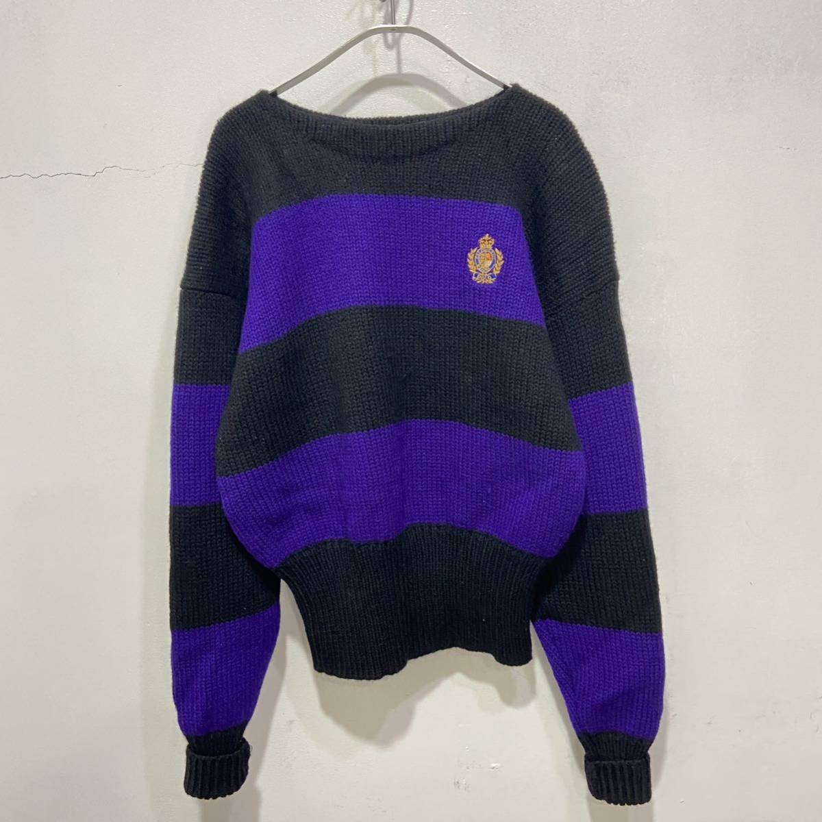 - 送料無料☆ 90s☆RalphLauren☆ボーダー柄ボートネックセーター☆黒☆紫☆M☆