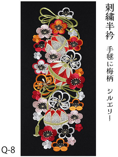 - 半衿 振袖 手毬に梅柄 はんえり 新合繊 シルエリー 刺繍半衿 手毬 梅 日本製 半えり 半襟 ポリエステル 刺繍衿 Q-8 メール便送料無料