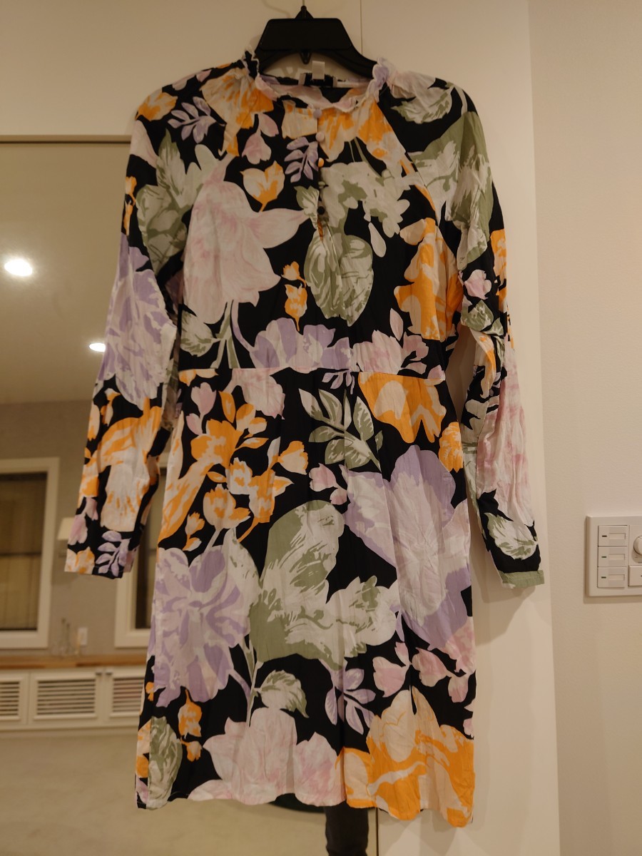 - VILA 花がらミニワンピース 黒字オレンジパープル Мサイズ
