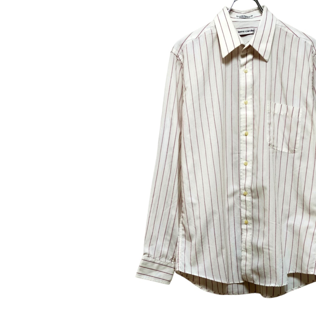 - 古着 ピエールカルダン 長袖シャツ ストライプ ヴィンテージ 芯入り襟 80s 90s