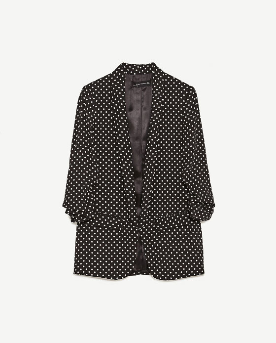 - /[美品 ZARA ザラ ドット柄 ジャケット 10990円 黒 フルイド生地 ブレザー ショールカラー 洗濯済み 匿名発送]