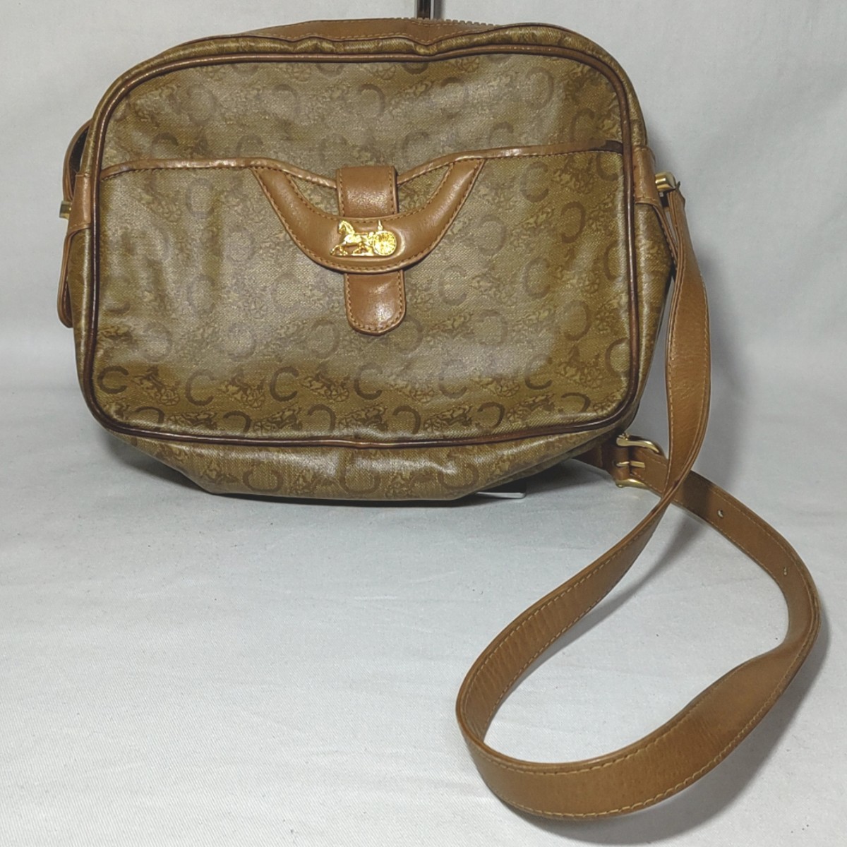 - セリーヌ CELINE ベージュ系 茶系 PVC レザー Cサルキー 馬車 ショルダーバッグ