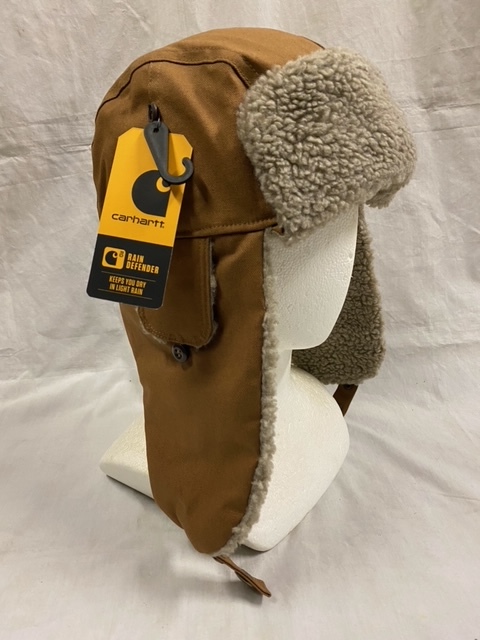 > Carhartt トラッパーハット ブラウン カーハート ボア付き フライトキャップ バイク 防寒 ツーリング キャンプ L-XL バス釣り 暖かい帽子