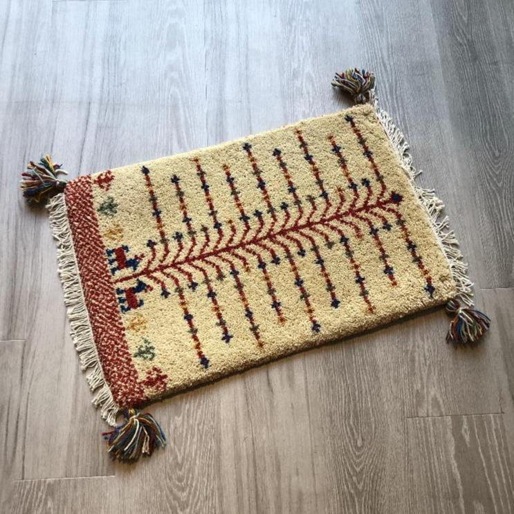 - 高級手結び絨毯 GABBEH ギャッベ 40×60cm ウール 玄関マット おしゃれ カーペット 絨毯 ハンドノット ギャベ ラグ 段通 キリム 90
