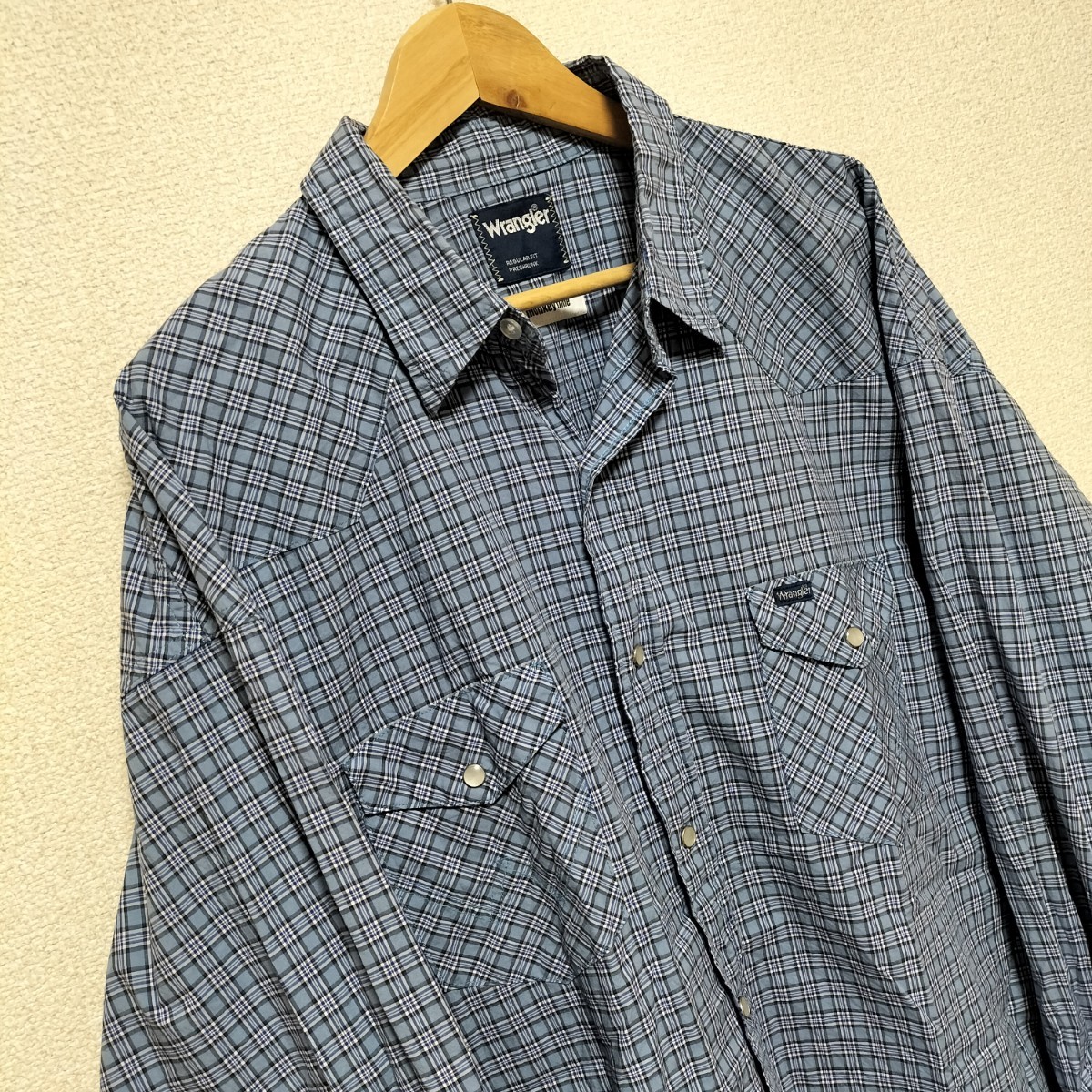 > 美品★Wrangler monkeytime オーバーサイズ コットン ウエスタンシャツ 長袖 チェック 青 メンズ サイズL ラングラー モンキータイム USED