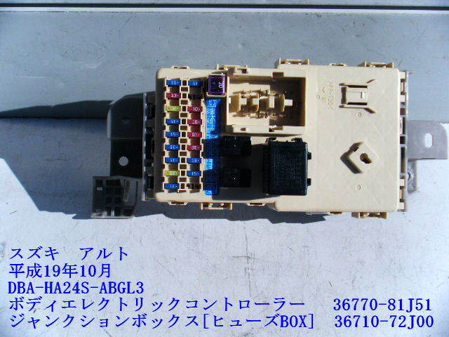 - ◆DBA-HA24S スズキ アルト ヒューズボックス ジャンクションブロック 36710-72J00 ボディエレクトリック 36770-81J51 [12809]