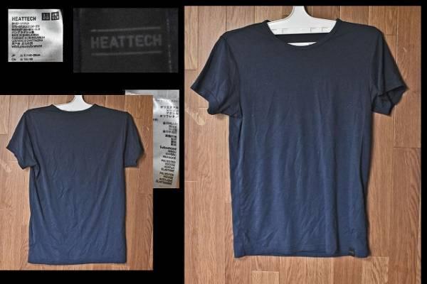 - ユニクロ HEAT TECH 丸首 Tシャツ ネイビー <S> アンダーウエア