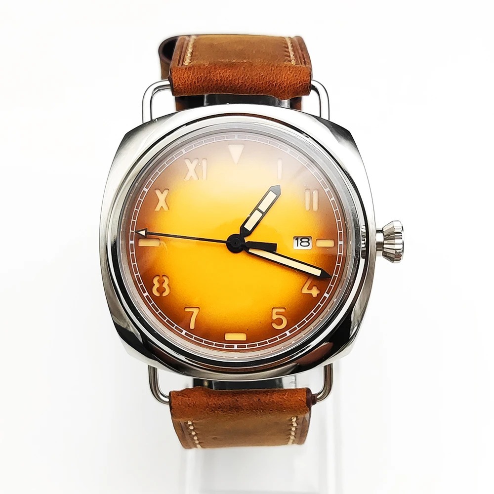 - 45mm カルフォルニア ブラウンダイヤル 発光 防水 ブラウンレザー 自動機械式腕時計 メンズ nh35