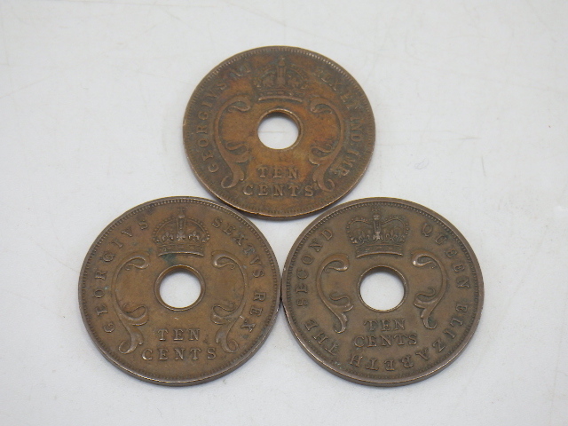 - h5A093Z- 外国 旧硬貨 イギリス領 東アフリカ 10セント 3枚 1943年/1951年/1956年