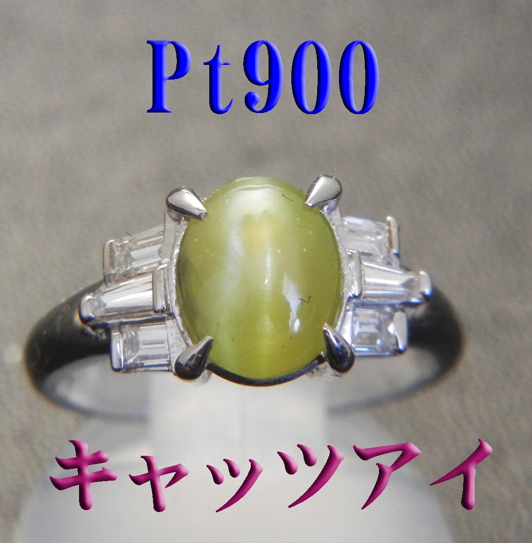 - 新品 Pt900 天然キャッツアイ 3.09ct 天然ダイヤ 0.38ct リング
