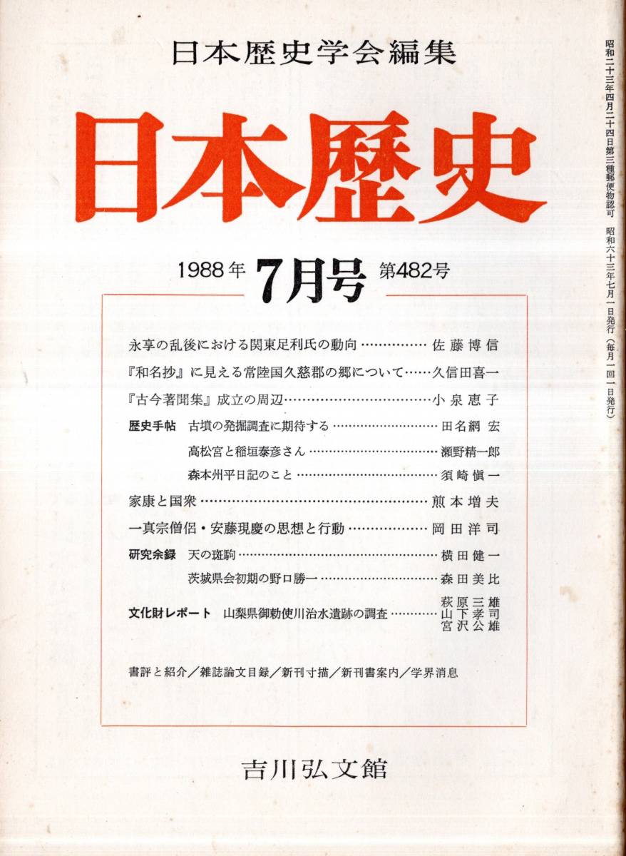 > 日本歴史第482号 一真宗僧侶安藤現慶の思想と行動=岡田洋司・森本州平日記のこと=須崎愼一・天の斑駒=横田健一・高松宮と稲垣泰彦さん