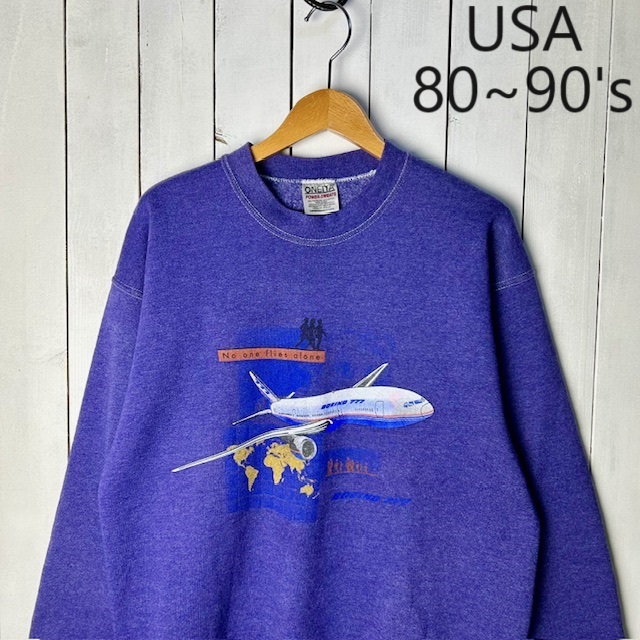 - USA古着 80s~90s USA製 BOEING777 スウェット L 紫 ONEITA オールド ヴィンテージ アメリカ古着 ボーイング777 オニータ ●216
