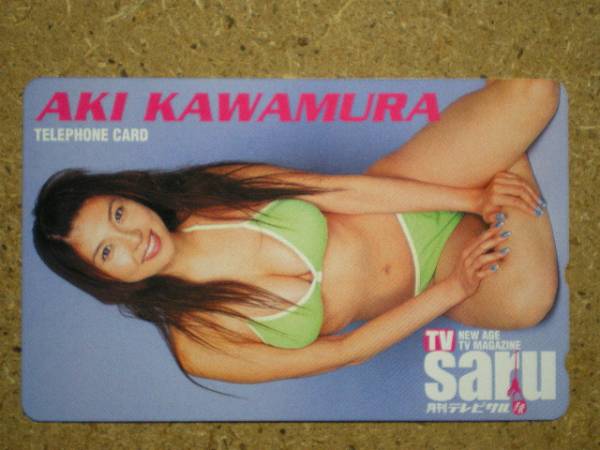 > kawam・川村亜紀 TVサル 緑ビキニ水着 テレカ