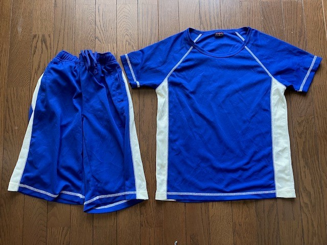 > レディース 半袖 メッシュ ラグラン ハーフパンツ 上下 伸縮性 ブルー、青×白系 M 涼しい ウォーキング 送料無料 底値