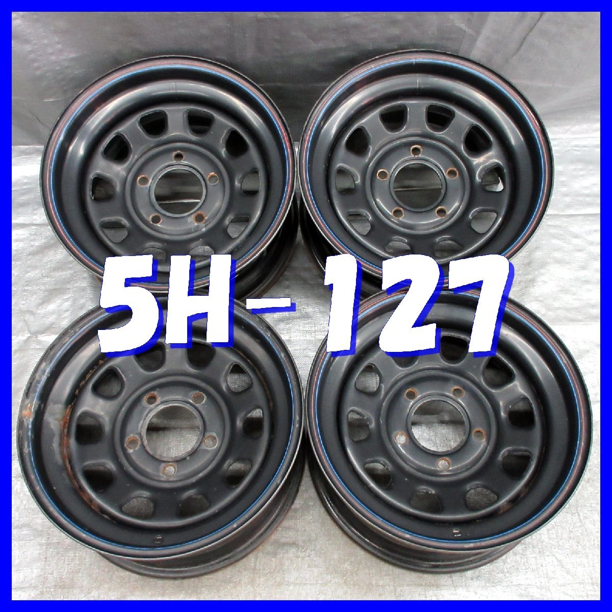 > □送料無料 A2■ ブラックスチール ■ 15×7J±0位/15×8J+14位 ■ 5H PCD127 ■ ハブ径φ83.5 ◇ 4本 ◇ ブラック/レッド・ブルーライン