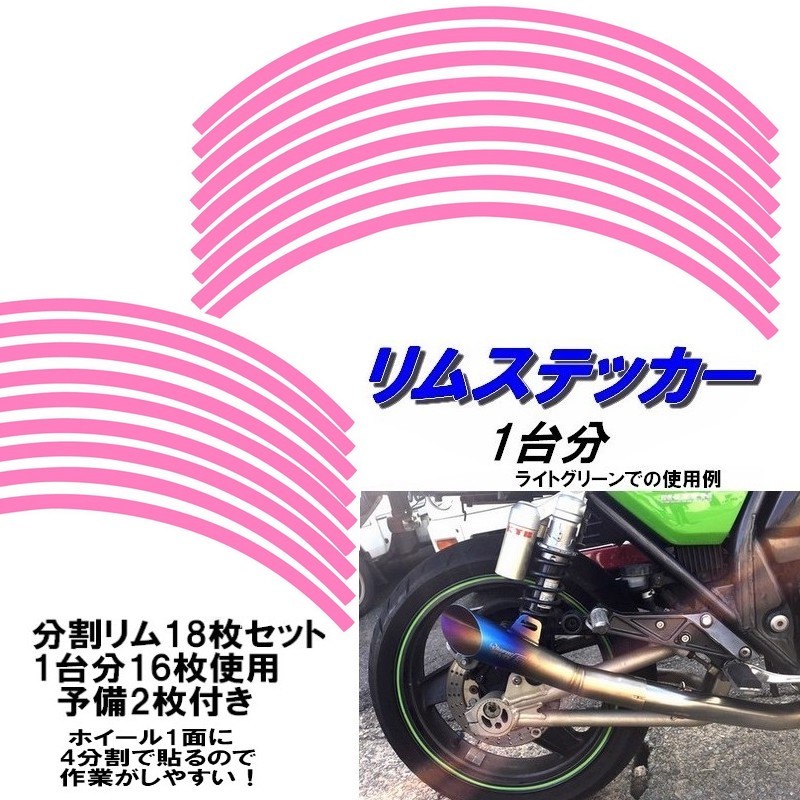 > バイク ホイール リムステッカー 【 19インチ 10mm幅 ( ピンク ) 】 (1台分+予備) リムラインテープ ラインリム オートバイ 車 自動車
