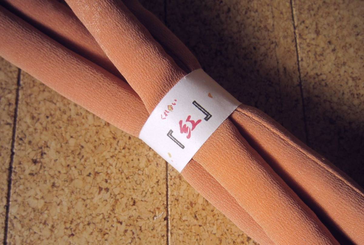 ■古い生地からリメイク、紋錦紗縮緬の鈍い杏色の地 紋入り縮緬。