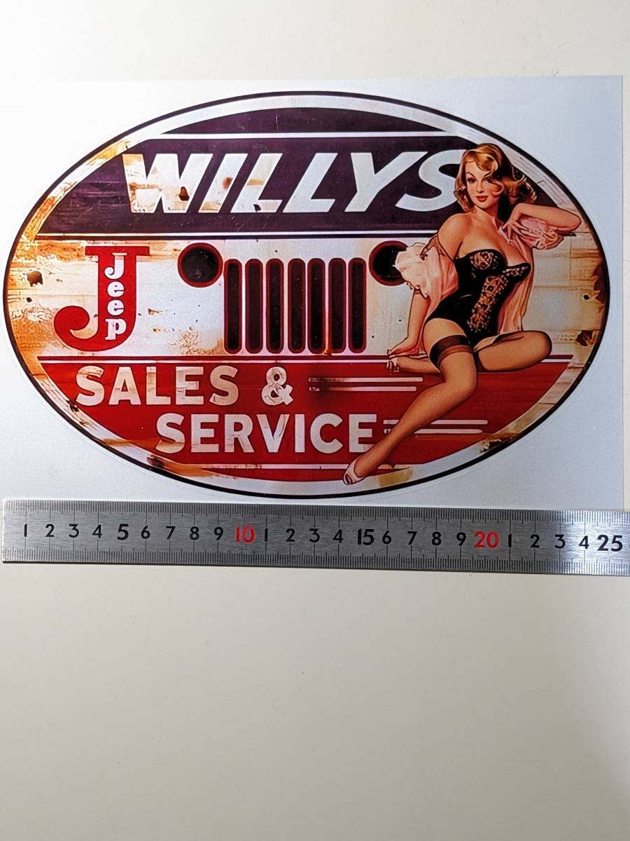 - 【名作 WILLYS JEEP 特大約250㎜x170㎜】アート ピンナップガール★セクシーステッカー★レトロ 車 ジープ ガレージ