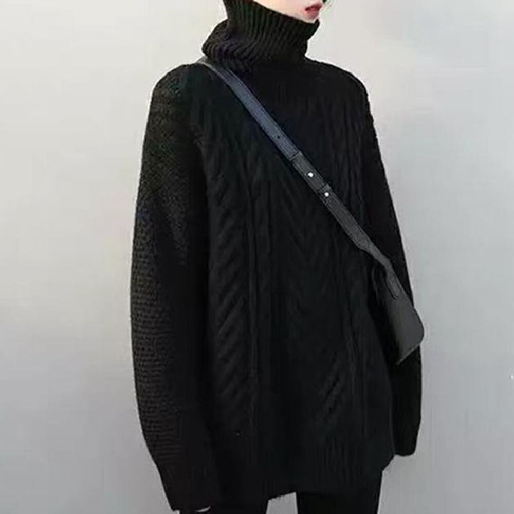 - レディース ゆったりニット タートルネック かわいい編み込みニット S/M/L/XLDJ608