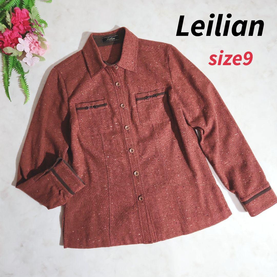- レリアン Leilian ウール素材・ホースビット飾り長袖シャツ・ブラウス 赤茶色 表記サイズ9号 M 82710