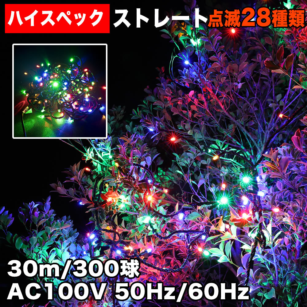 > クリスマス 防水 イルミネーション ストレート ライト ハイスペックタイプ LED 300球 30m 4色 ミックス 28種点滅 Bコントローラセット