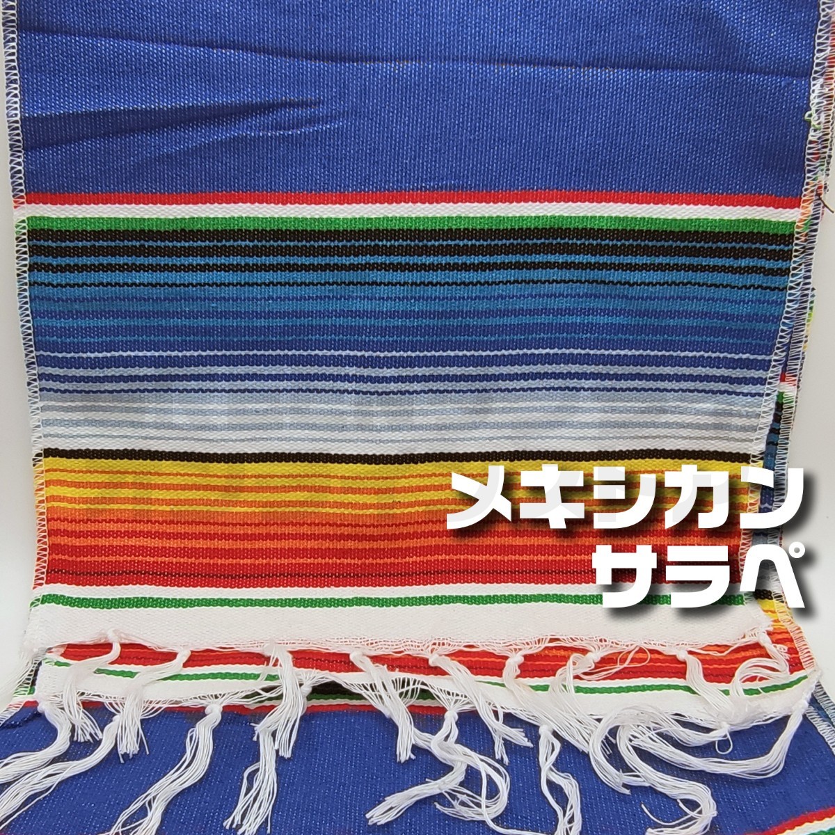 - メキシカン ラグマット ブランケット サラペ テーブルクロス ブルー 青