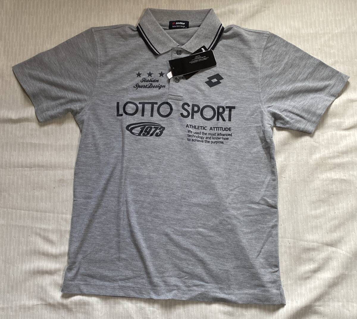 - 半袖ポロシャツ Mサイズ ロット/Lotto グレー系色文字柄■■未使用品