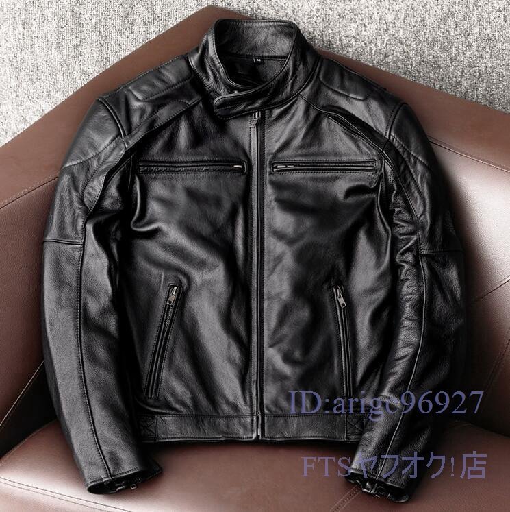 - U990☆新品ハレーバイクレザージャケット 上品 本革 高級 牛革 ライダースジャケット 革ジャン S~5XL 黒
