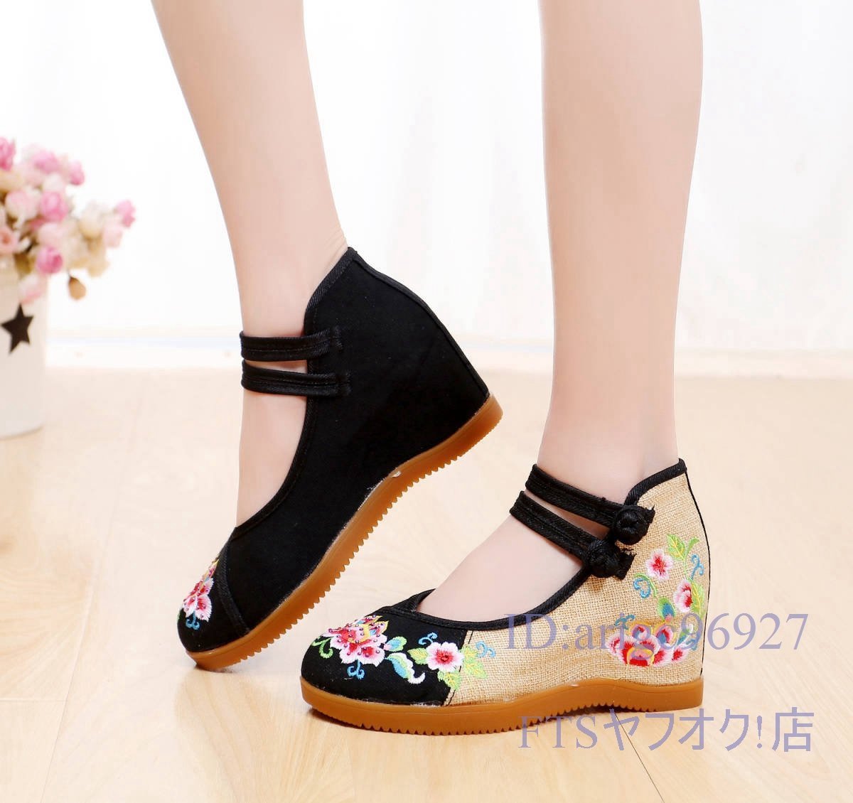 - S638☆新品レディース ダンスシューズ キャンバスシューズ 刺繍 花柄 ウォーキングシューズ 大きいサイズあり ブラック 22cm~25.5cm