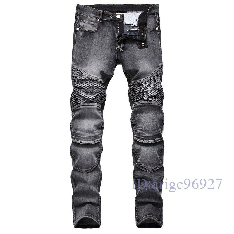 > S572☆新品メンズジーンズダメージデニムパンツライディングパンツバイクパンツストレッチパンツカジュアルパンツ大きいサイズグレー