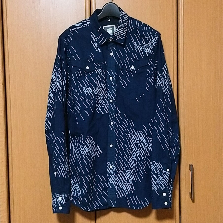 - G-STAR RAW ジースターロウ 長袖シャツ ネイビー コットン ロゴプリント サイズS ウエスタンシャツ ブルー 青