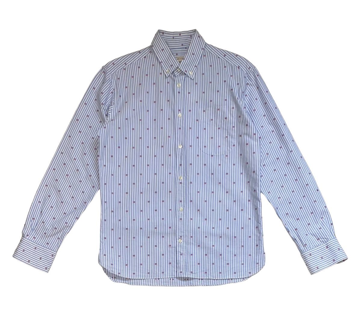 - 【美品】MAISON KITSUNE メゾンキツネ 長袖シャツ カットソー ストライプ ボタンダウン コットン ブルー メンズ 40