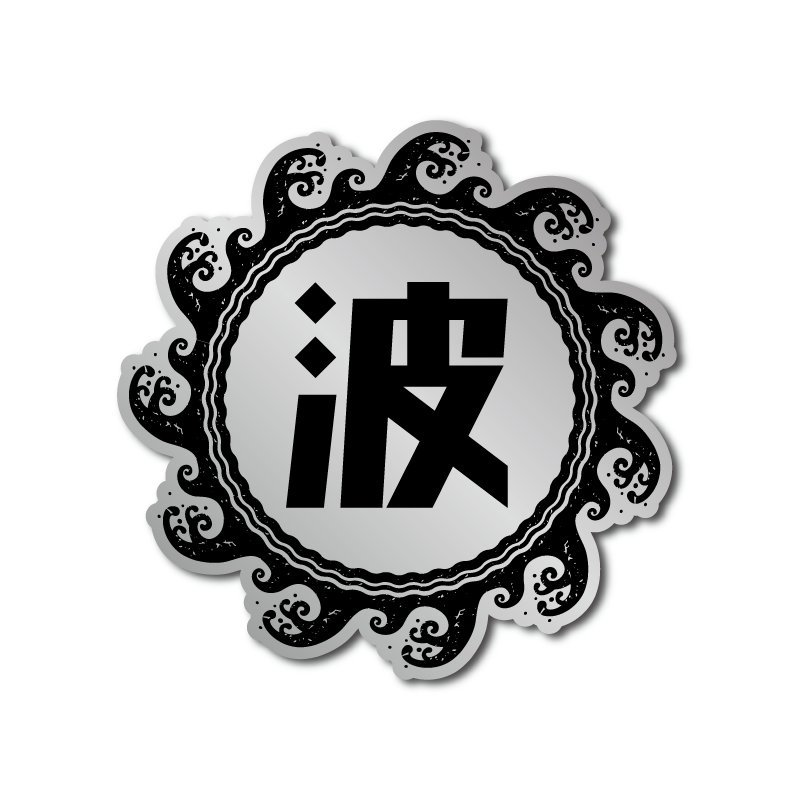 - (マットミラー)波ステッカー Dタイプ黒 サーフィン 海 キャンピングカー 9cm