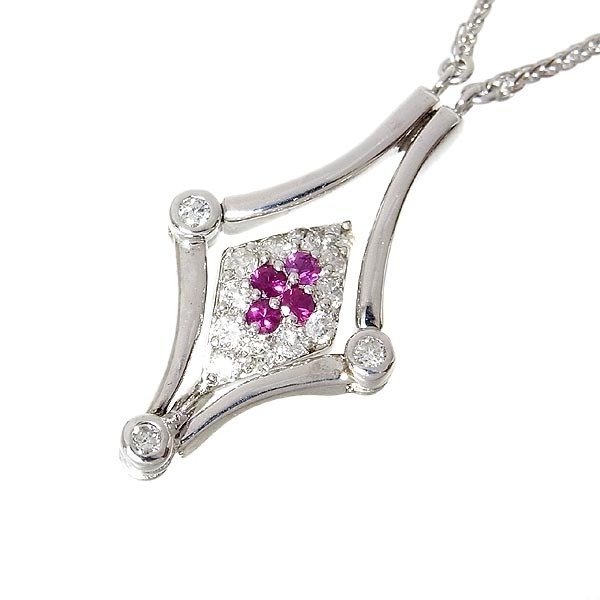 > K18WGネックレス メレダイヤ入りデザインペンダント付 D:0.41ct R0.16ct 8.4g