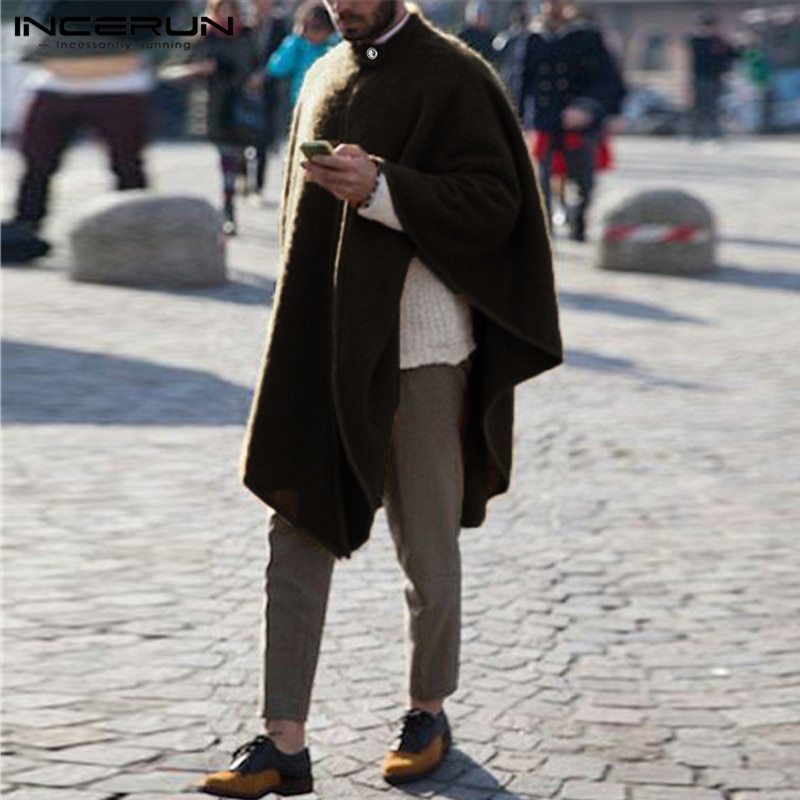 - INCERUN ファッション メンズ トレンチ ケープ クローク コート アウター カジュアル ルーズ フィット ジャケット オータム ウォームDJ1372