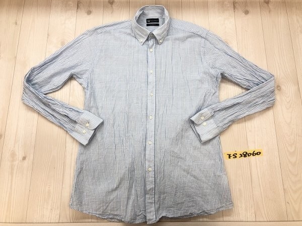 - W BUSINESS メンズ カスタムフィット 薄手 ストライプ 長袖シャツ L 水色白