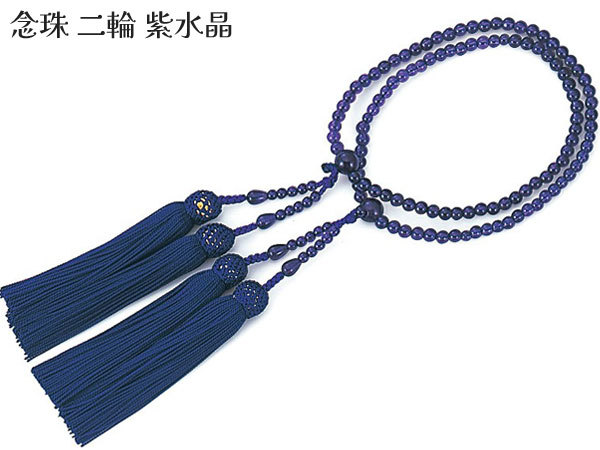 - 水晶念珠 念珠 数珠 二輪 紫水晶 女性用 二輪 本水晶 本連数珠 念珠 本連数珠 108個 日本製 送料無料