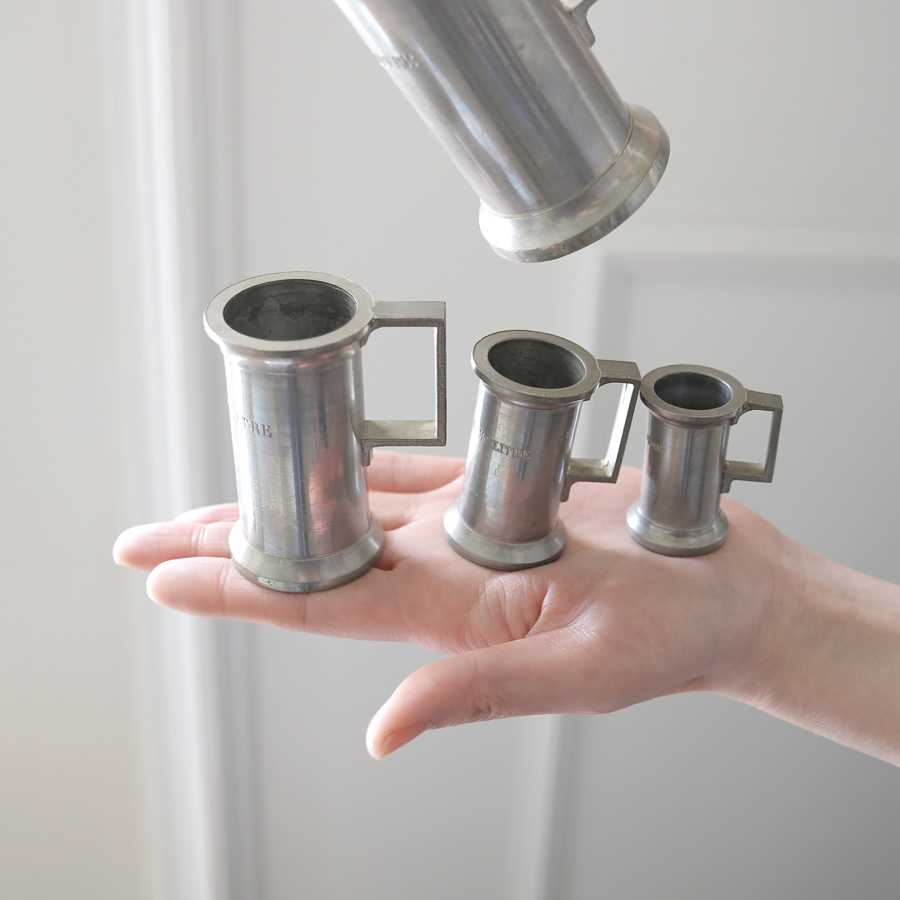 - 4個セット フランス ビンテージ ピューター カップ 錫 アンティーク ミニチュア ドール 軽量カップ 4サイズ セット 中世 ゴシック