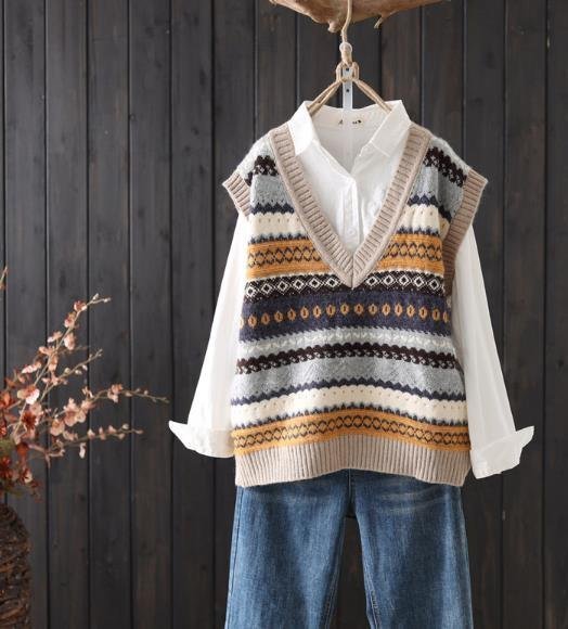 - ニットベスト レディース Vネック ゆったり ショート ベスト 秋冬用 オシャレ ZCL1438