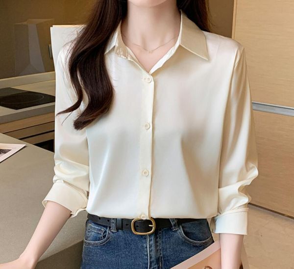 - 春新品 / 上品 シャツ 大人 つるつる サテン 長袖 ブラウスシャツ 着やせ オフィス 通勤 きれいめ トップス/