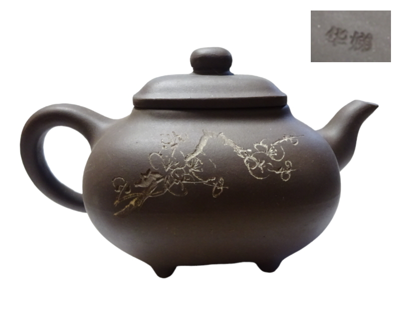 - 唐物 時代 朱泥 「潘華弟」落款 大振 紫泥 紫砂壺 宜興 紫砂 急須 茶壺 茶器 在銘 茶道具 時代物 中国美術 朱泥 紫砂茶壺 g0229p