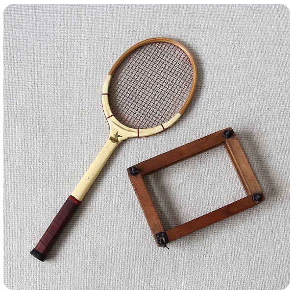 - イギリス ビンテージ 木製 テニスラケット ラケットプレス付き インテリア カバー「ディスプレイに」P-208