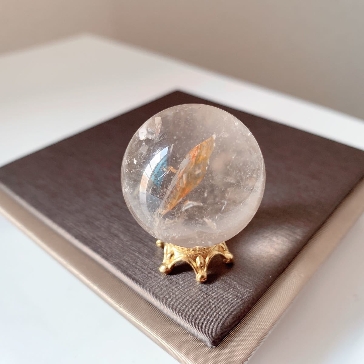 - ◇タンジェリン・クォーツ◇水晶玉◇虹入り◇丸玉◇パワーストーン◇天然石◇置き台付き◇置物◇プレゼントにも 021A30402