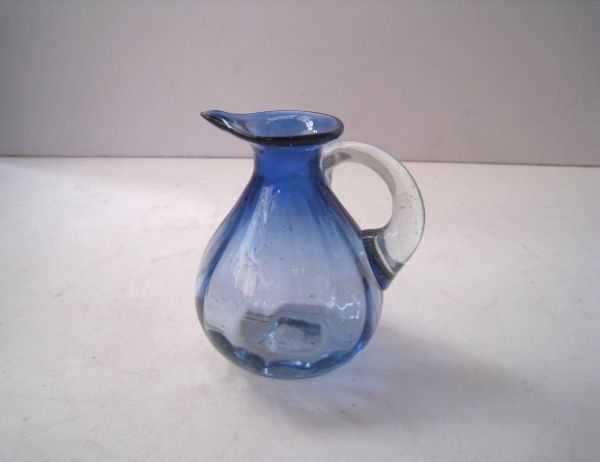 - ブルーのガラスの花瓶 花器 花入れ フラワーベース オブジェ 飾り 外径8㎝×H10.5㎝/22N2.15-54