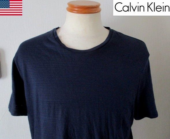 > ★ メンズ カルバン クライン Calvin Klein コットン エンボスデザイン 半袖 カットソー ビッグサイズ US XL 日本3L ネイビー