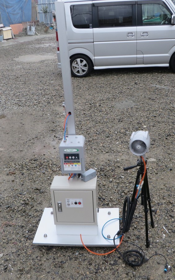 > Z-3092■ETG エヴァポクーラー EC-V-03+ファン1個+コントロール制御盤+スタンド(アルミ) 中古 フォークリフト ミニ建機 ゴルフカート等