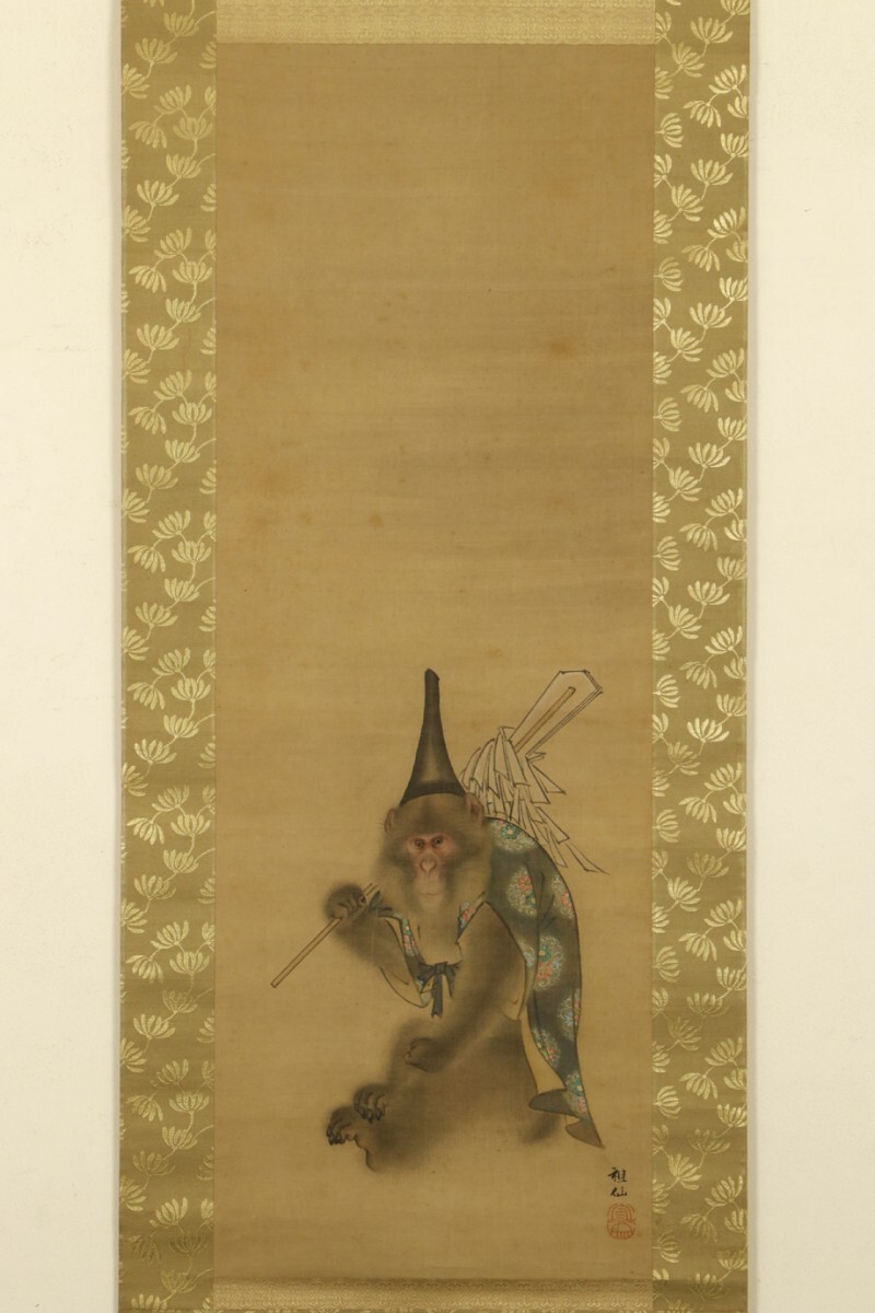- 【真作 江戸動物画】掛軸「森狙仙 神祇猿猴図」江戸後期 絵師 森派祖 猿画名手 絵画