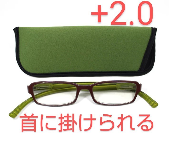 - +2.0新品/首に掛けられる/シニアグラス/ネックリーダーズ/グリーンブラウン