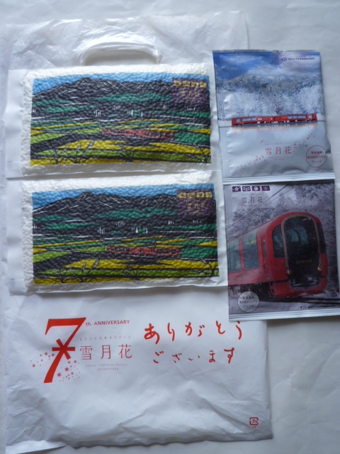 - えちごトキめき鉄道 雪月花 乗車記念品 4点セット+袋 米150g2袋:令和5年産コシヒカリ)等